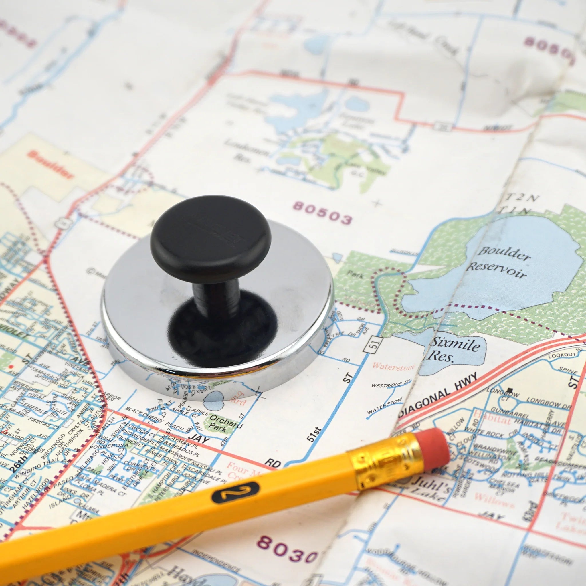 Frenergy Pot Magnets are specially designed magnets for holding weight to vertical steel surfaces. They have a sturdy design that offers improved strength and holding capacity. Accessories such asthreaded hooksand“P” clipscan be added to the magnet in order to hang lights or run cables on construction sights or at outdoor events.Pot magnets with eyelets orcountersunk attachment holeoptions are also available.